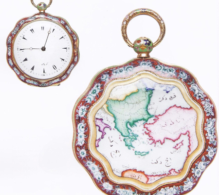 Montre de poche extra-plate en or émaillé, ornée d’une carte de l’Empire ottoman